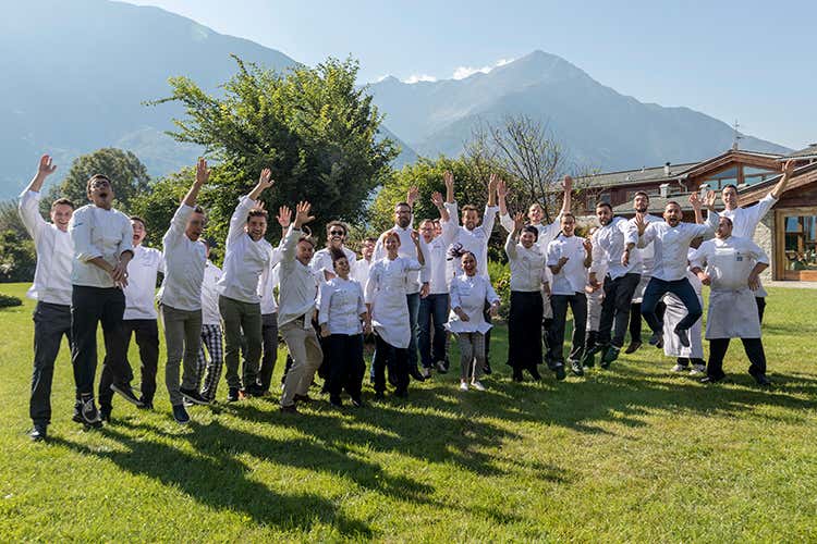 L’agriturismo valtellinese con ristorante stellato ha portato in scena una serata in cui 300 ospiti ed amici hanno potuto degustare le creazioni di uno dei più importanti convivi di cuochi (30 quelli impegnati in cucina) su iniziativa dell’associazione Euro-Toques. Variazioni sul tema Bitto, secondo personali interpretazioni